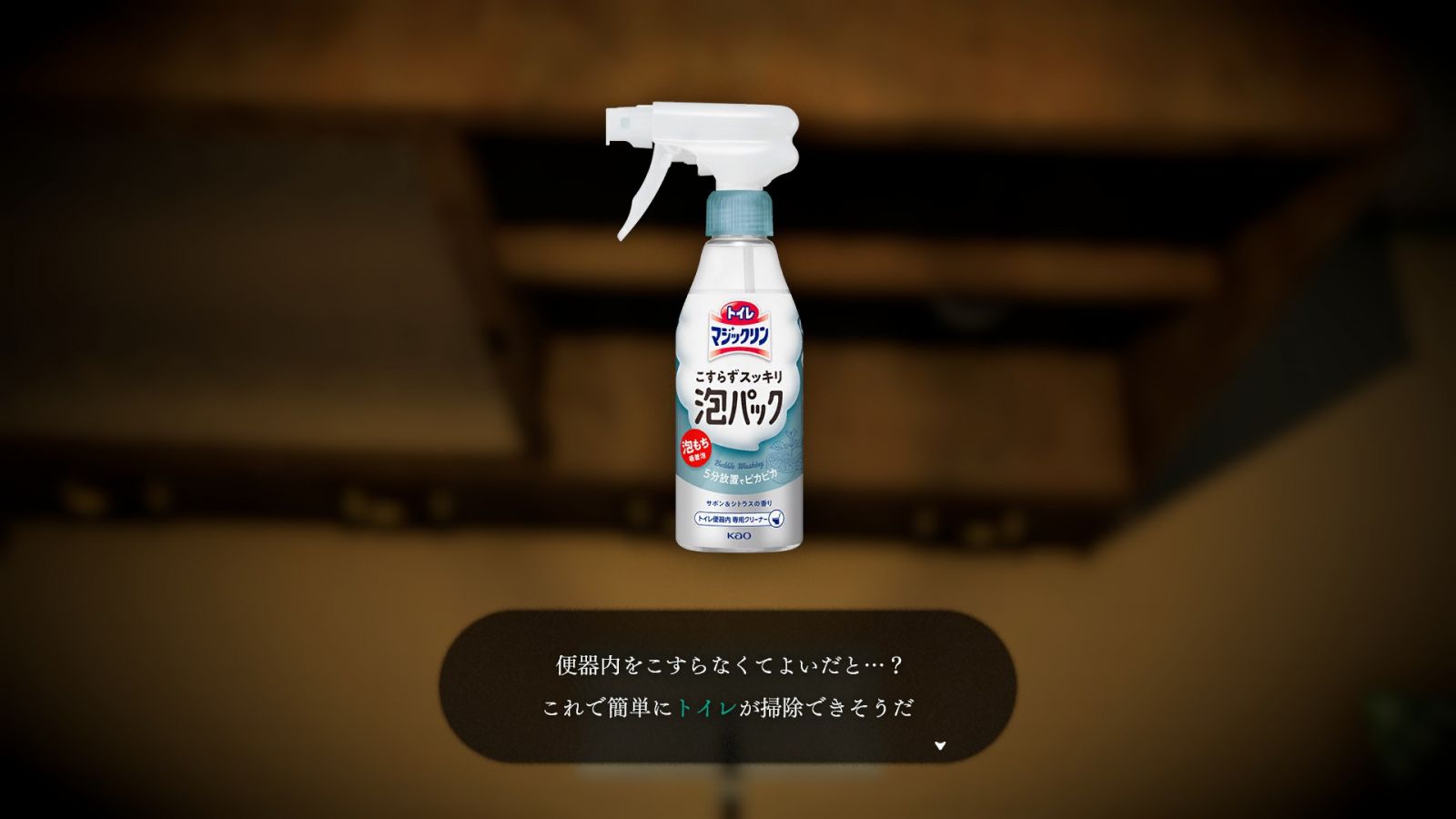 ゲーム中には、花王の実在商品「マジックリン」「クイックルワイパー」などが、掃除用アイテムとして登場します。