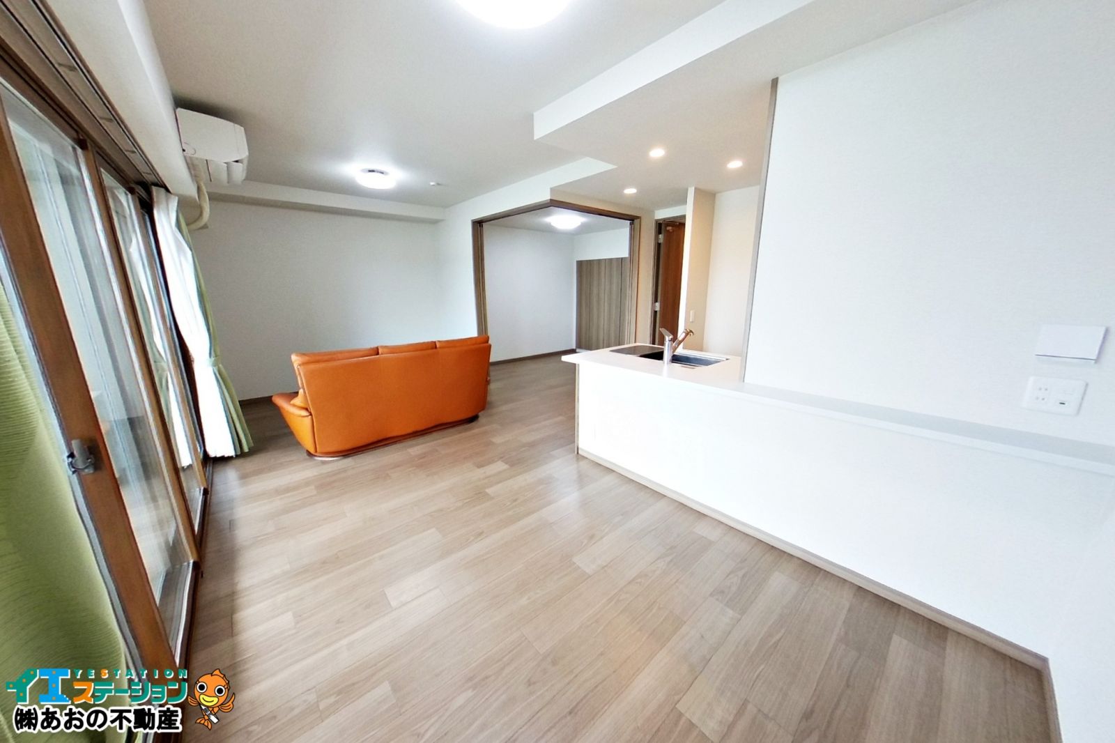●LDK【壁天井クロス貼替・床貼替・建具交換・巾木交換・エアコンクリーニング・LED照明器具交換】