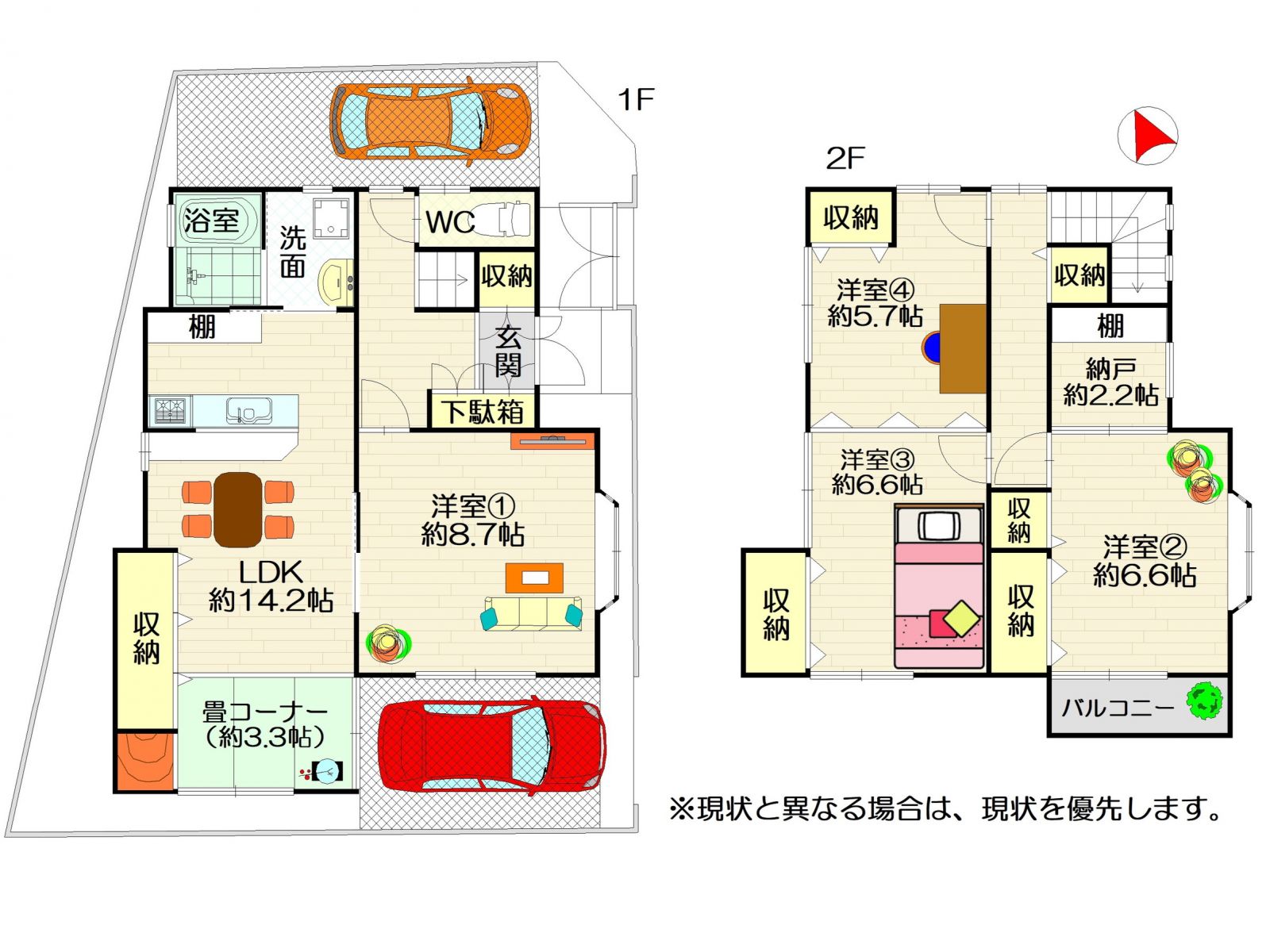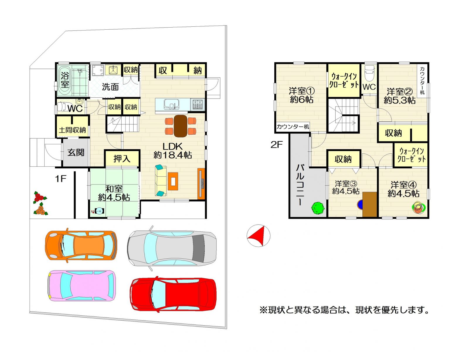 建物面積:106.49㎡(32.21坪)4LDK+納戸+畳コーナー