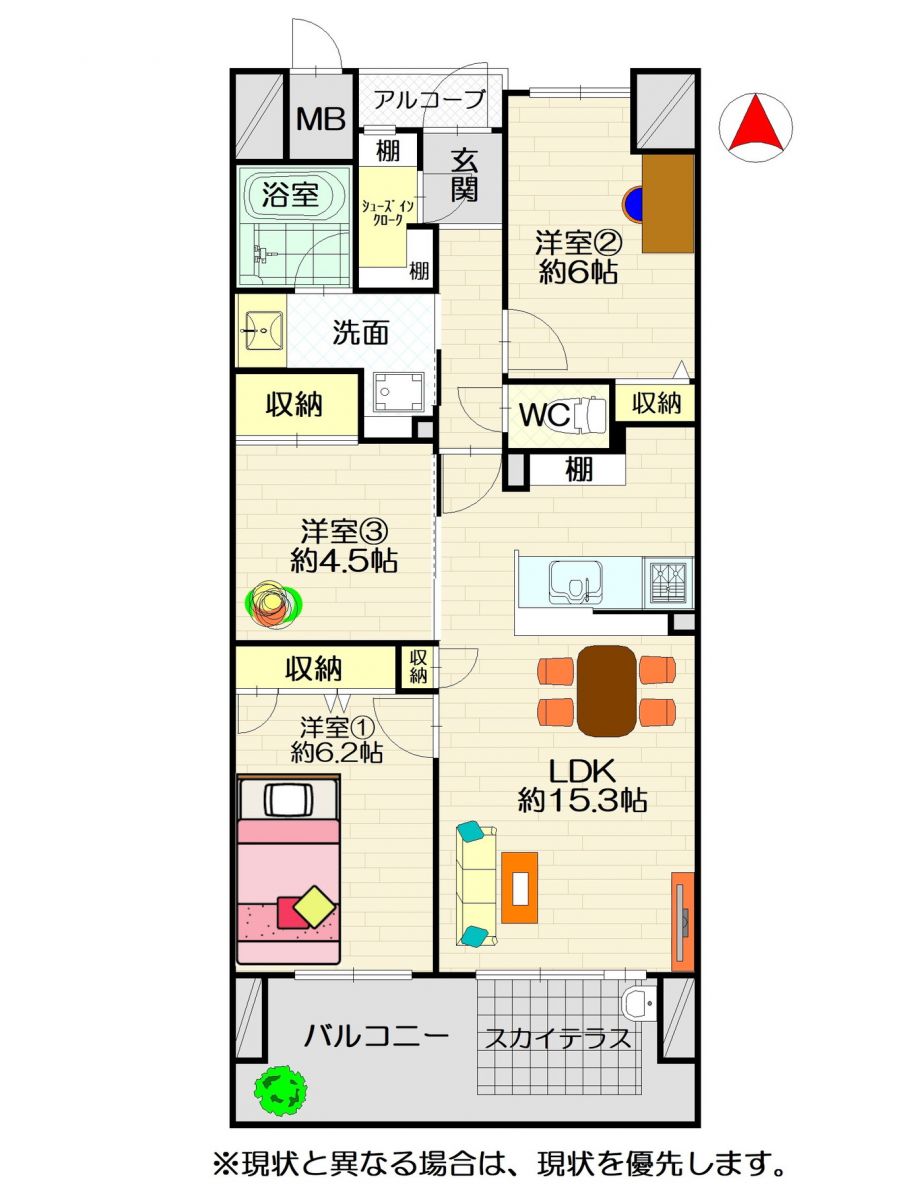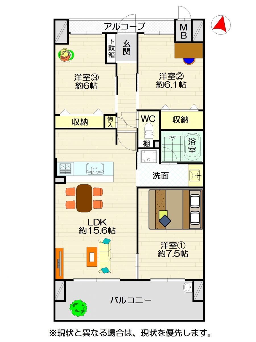 バルコニー:12.15㎡(3.67坪)3LDK